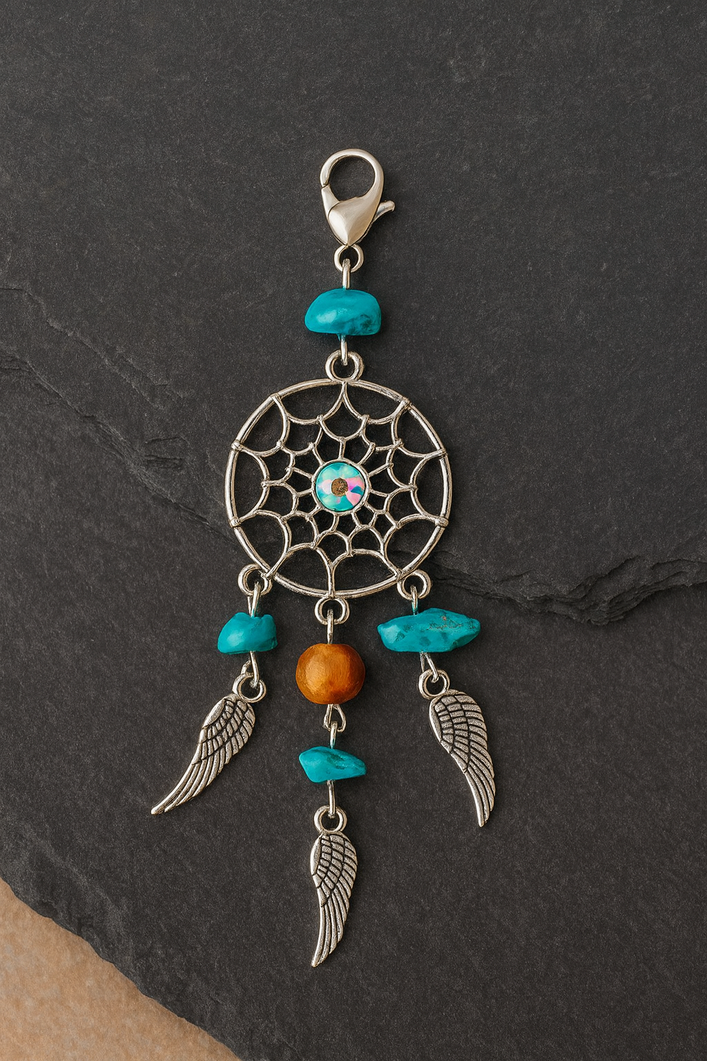 Ob als Talisman, Kettenanhänger, Taschenanhänger oder am Schlüsselbund – dieser Traumfänger schenkt dir positive Energie und begleitet dich auf deinem Weg.