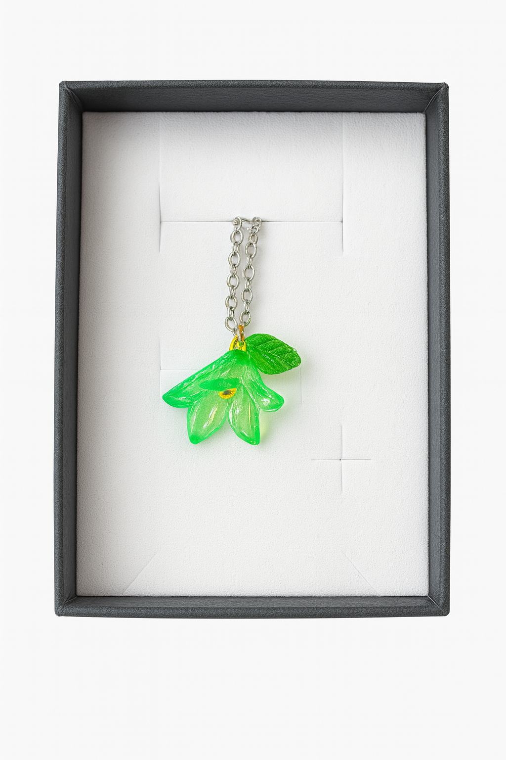 💠 Anhänger: Acryl-Lilie, verziert mit einem zarten Blatt