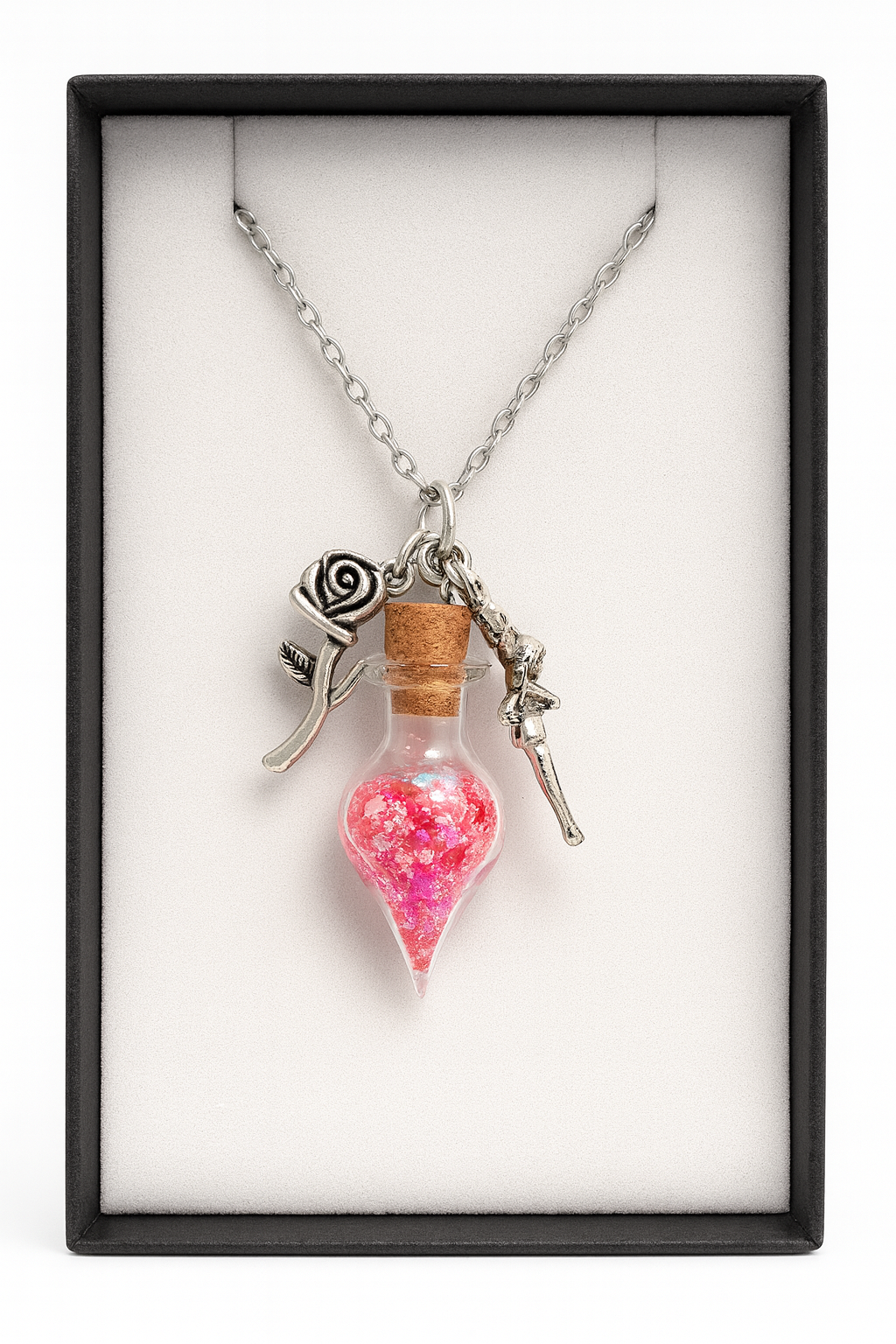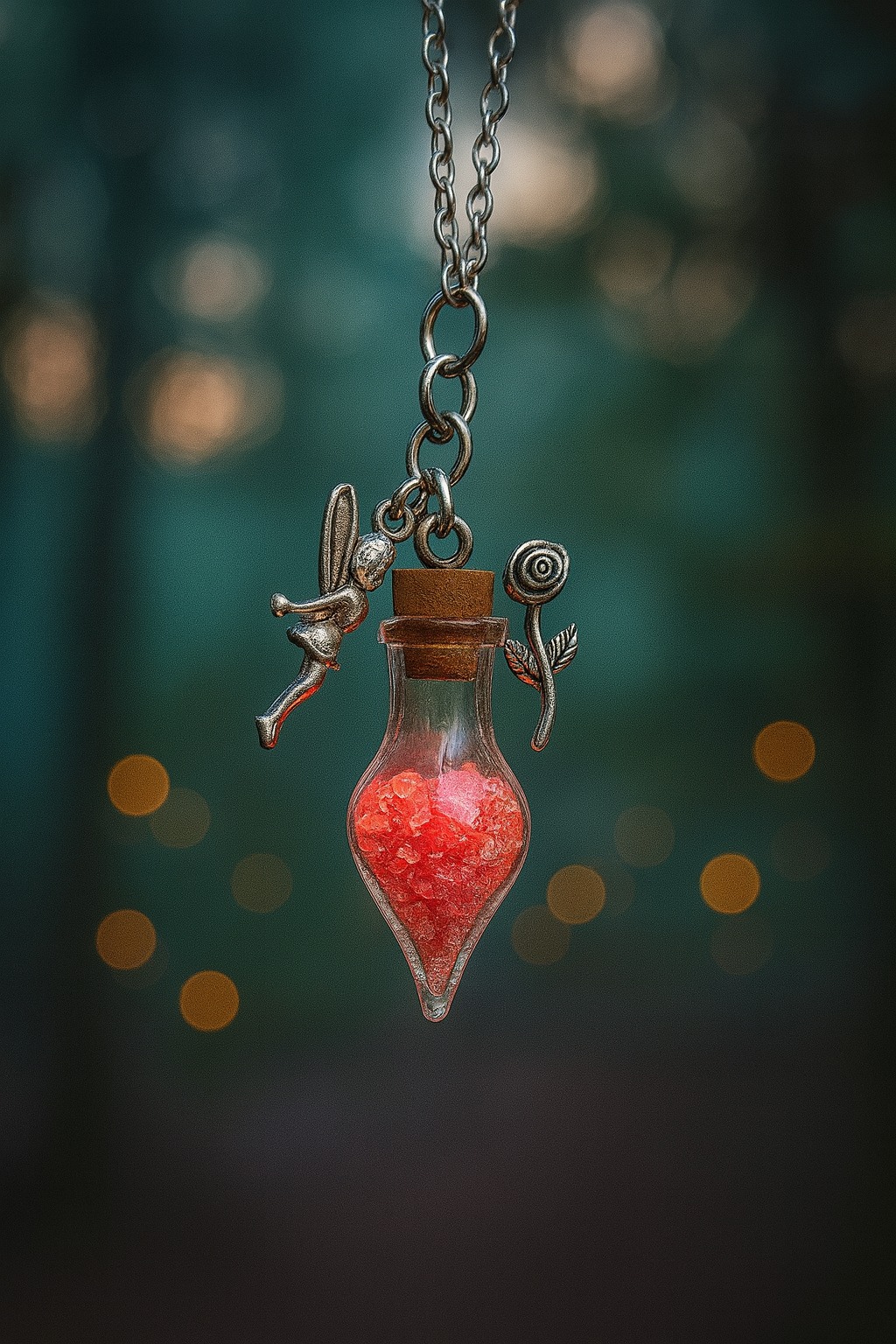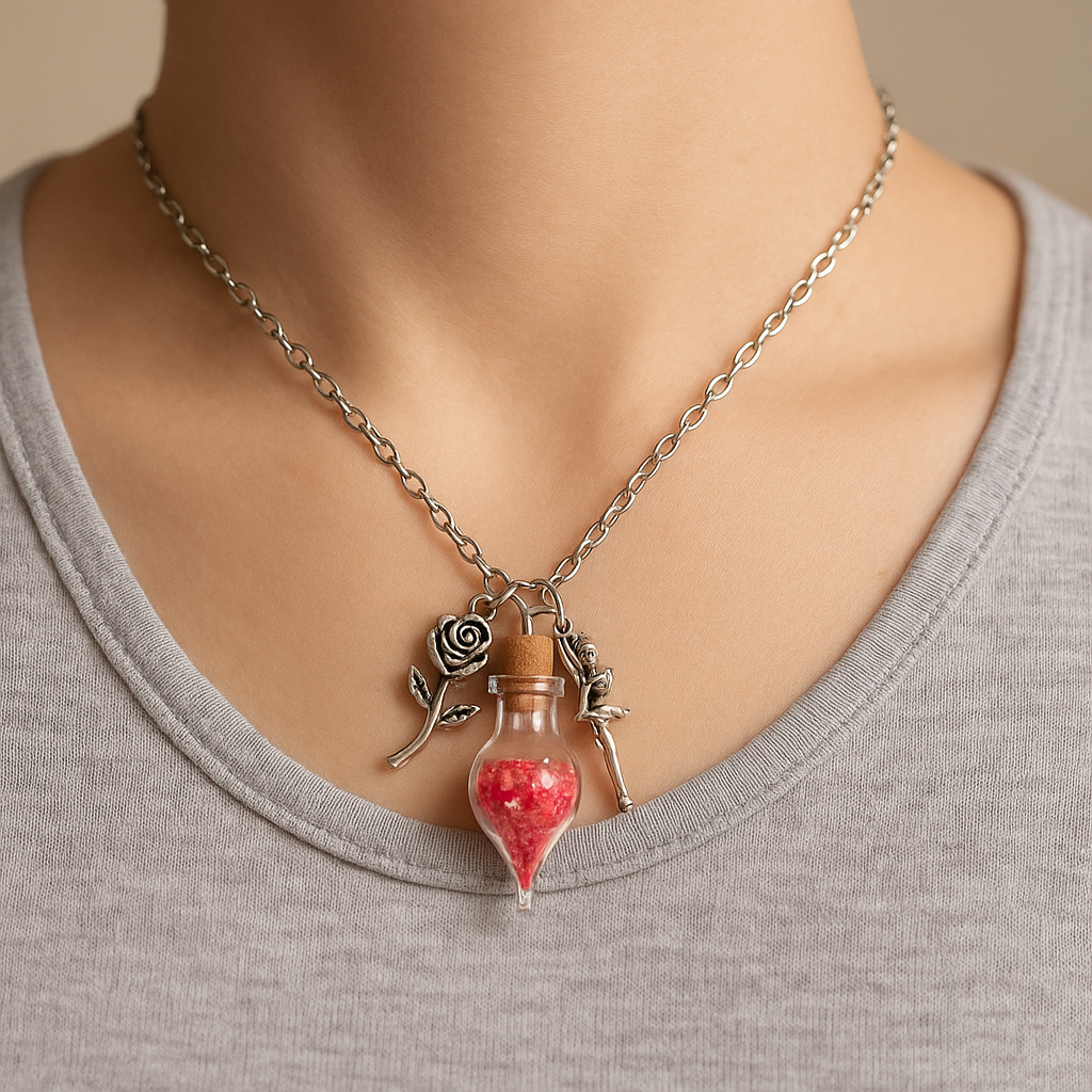 🌹 Feenstaub Glücksphiole „Rosenfee“ – Leuchtende Kette mit rotem Feenstaub 🧚♀️