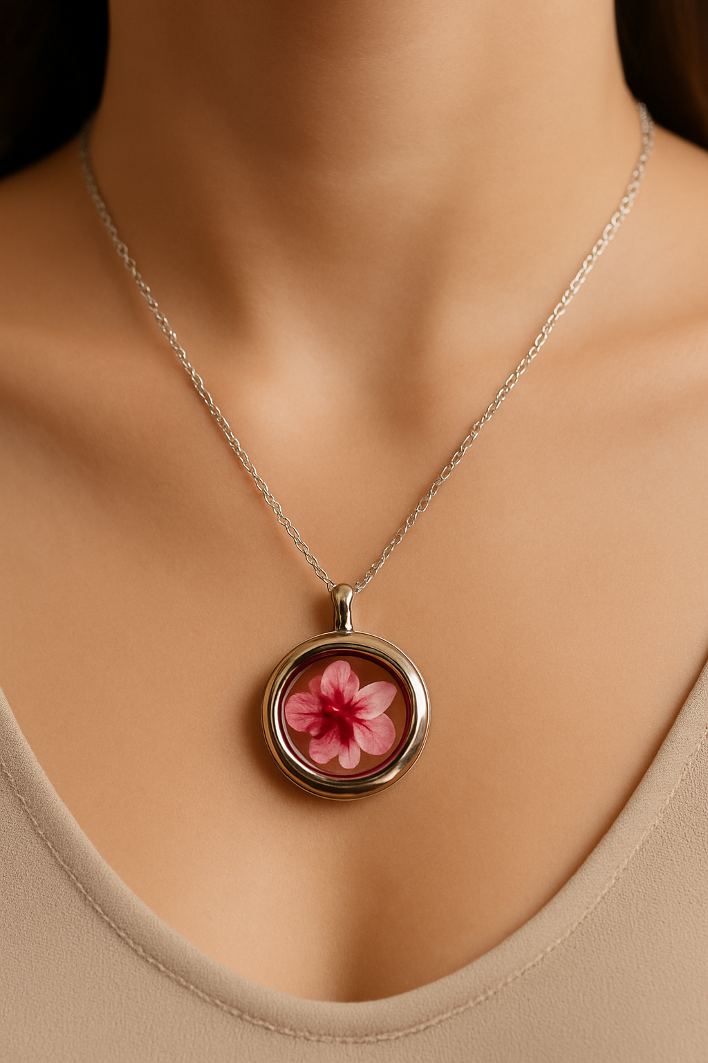 Jedes SchmuckstĂŒck ist ein liebevoll handgefertigtes Unikat. Durch die individuelle Auswahl der BlĂŒten gleicht kein Amulett dem anderen â ein ganz persönliches Accessoire fĂŒr alle, die natĂŒrlichen und nachhaltigen Schmuck schĂ€tzen.
