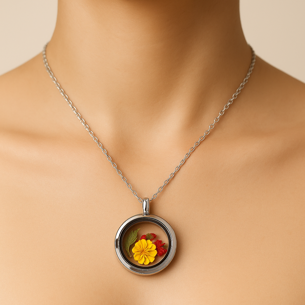 Edelstahl-Anhängerkette mit echten Trockenblumen – Handgefertigter Naturschmuck