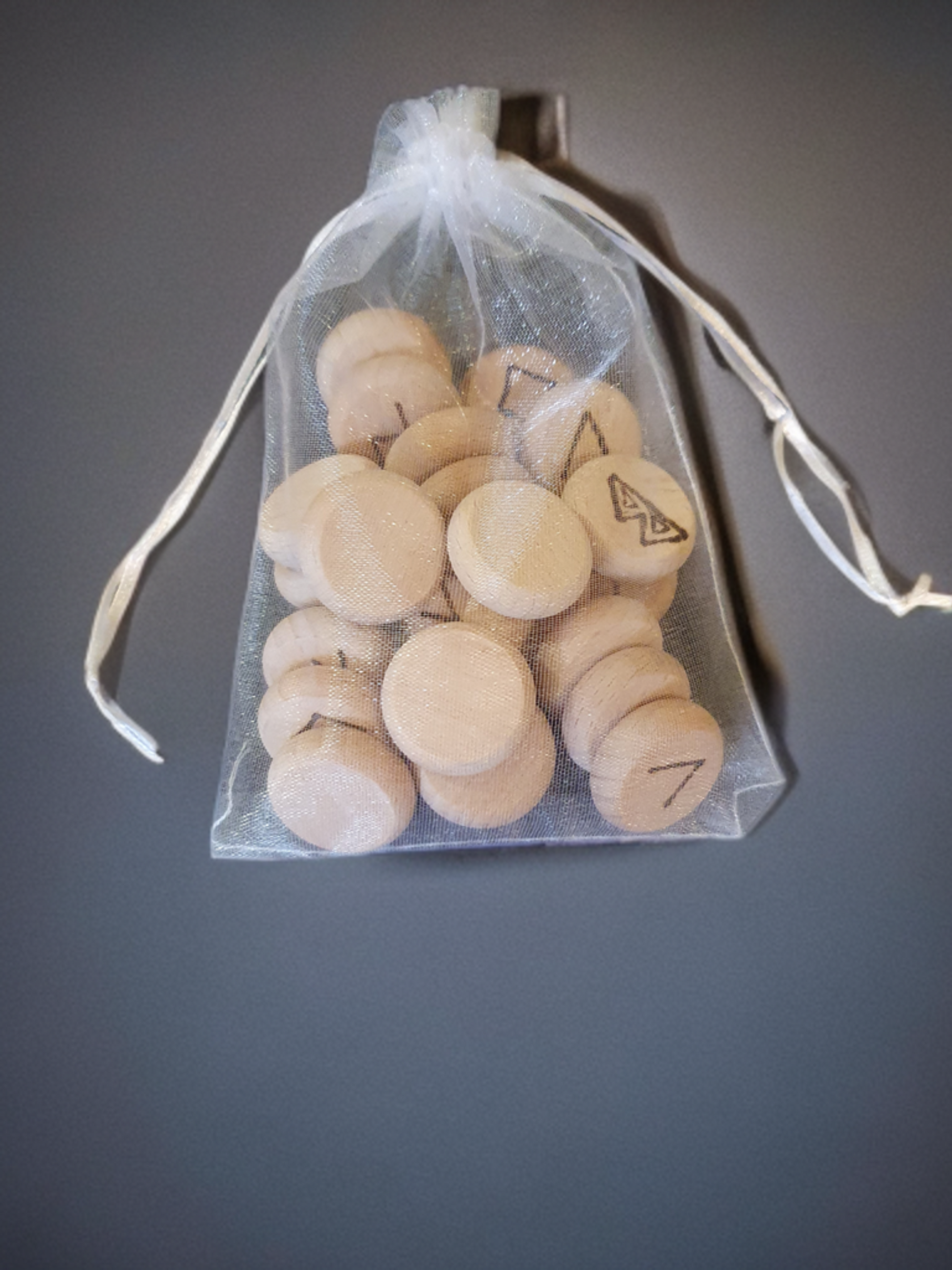 Runenset aus Buchenholz – 24 handgebrannte Runen des Älteren Futhark | Orakelsteine, Wicca, nordische Mythologie