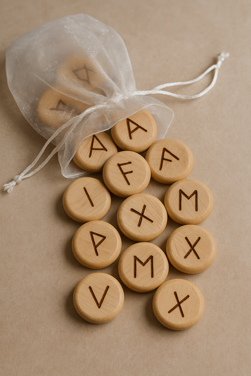 🔮 Handgemachtes Runenset aus Buchenholz – mit Brandmalerei und energetischer Reinigung