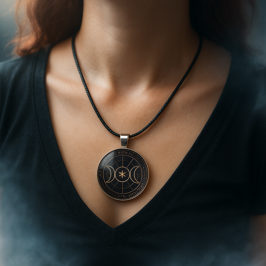 Wicca Ketten mit 7 mystischen Motiven – Pentagramm, Dreifachmond, Lebensbaum, Sonne & Mond, Kristallkugel, Vollmondphasen & Yule – Spiritueller Schmuck für Hexen & Esoterik